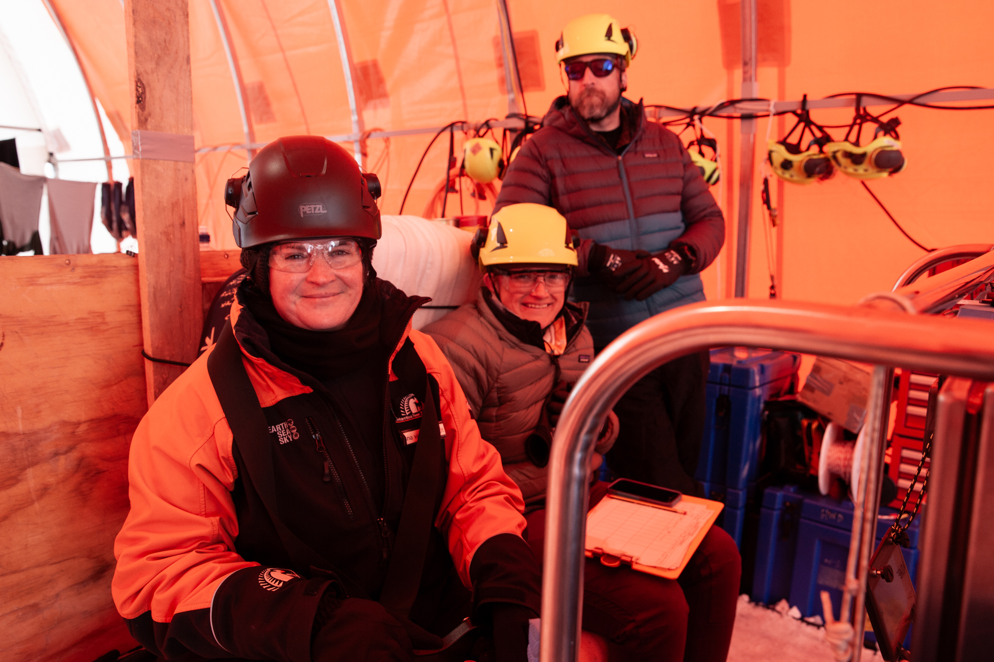 It’s ‘open hole’ science time at KIS3. With our hot water drillers having successfully melted a hole through the 588m thick ice shelf, they handed over control of the drill tent to our science team.