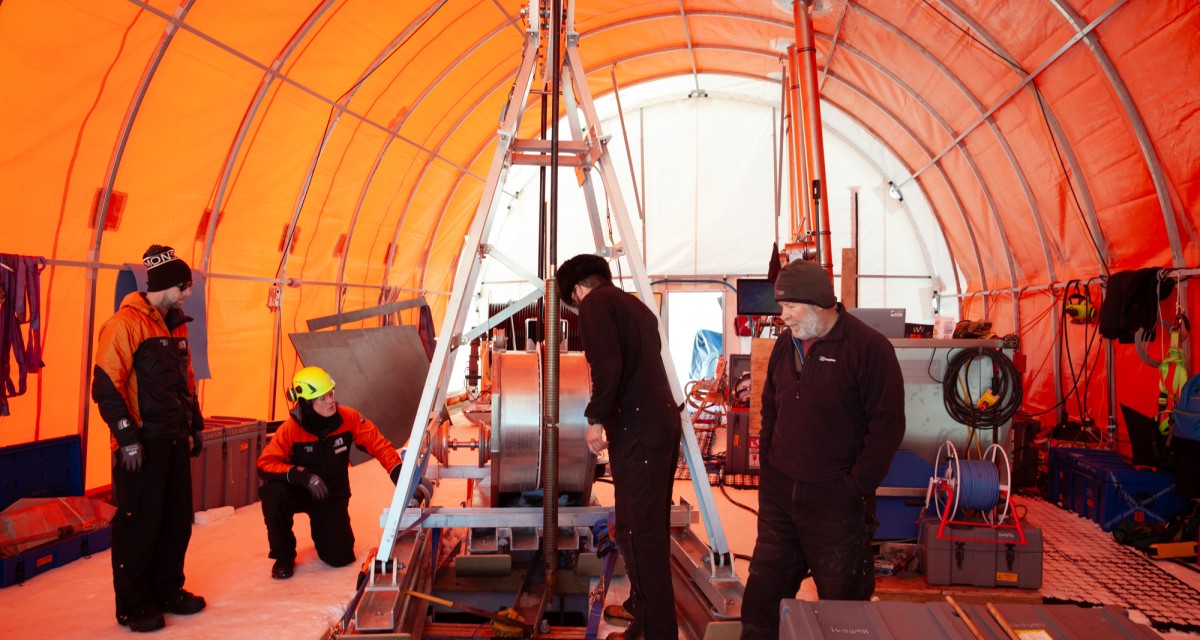 Once the well pump is in place, and circulation established, they’ll have an endless supply of water for drilling our main hole, all the way through the 580m of the ice shelf.