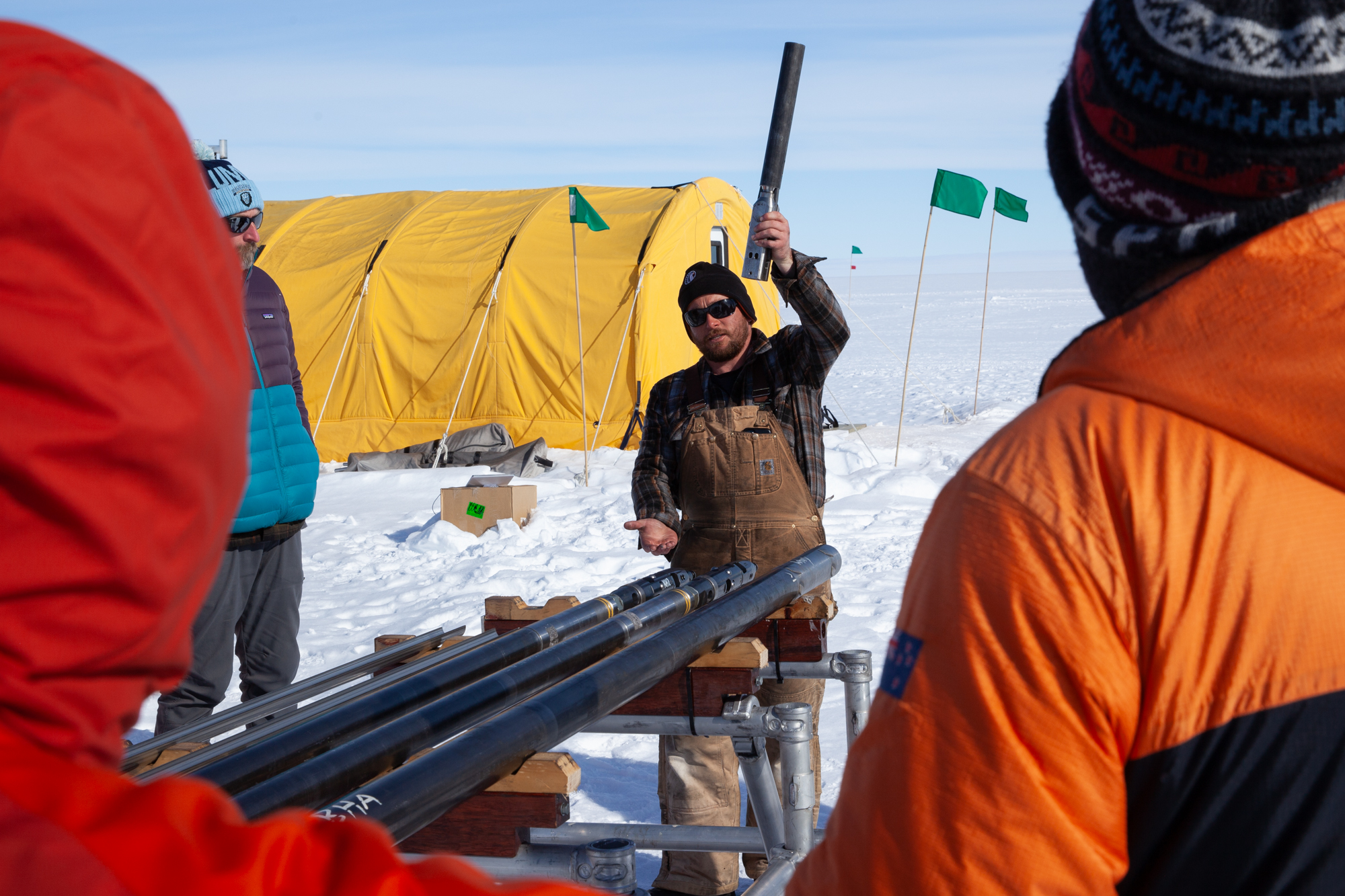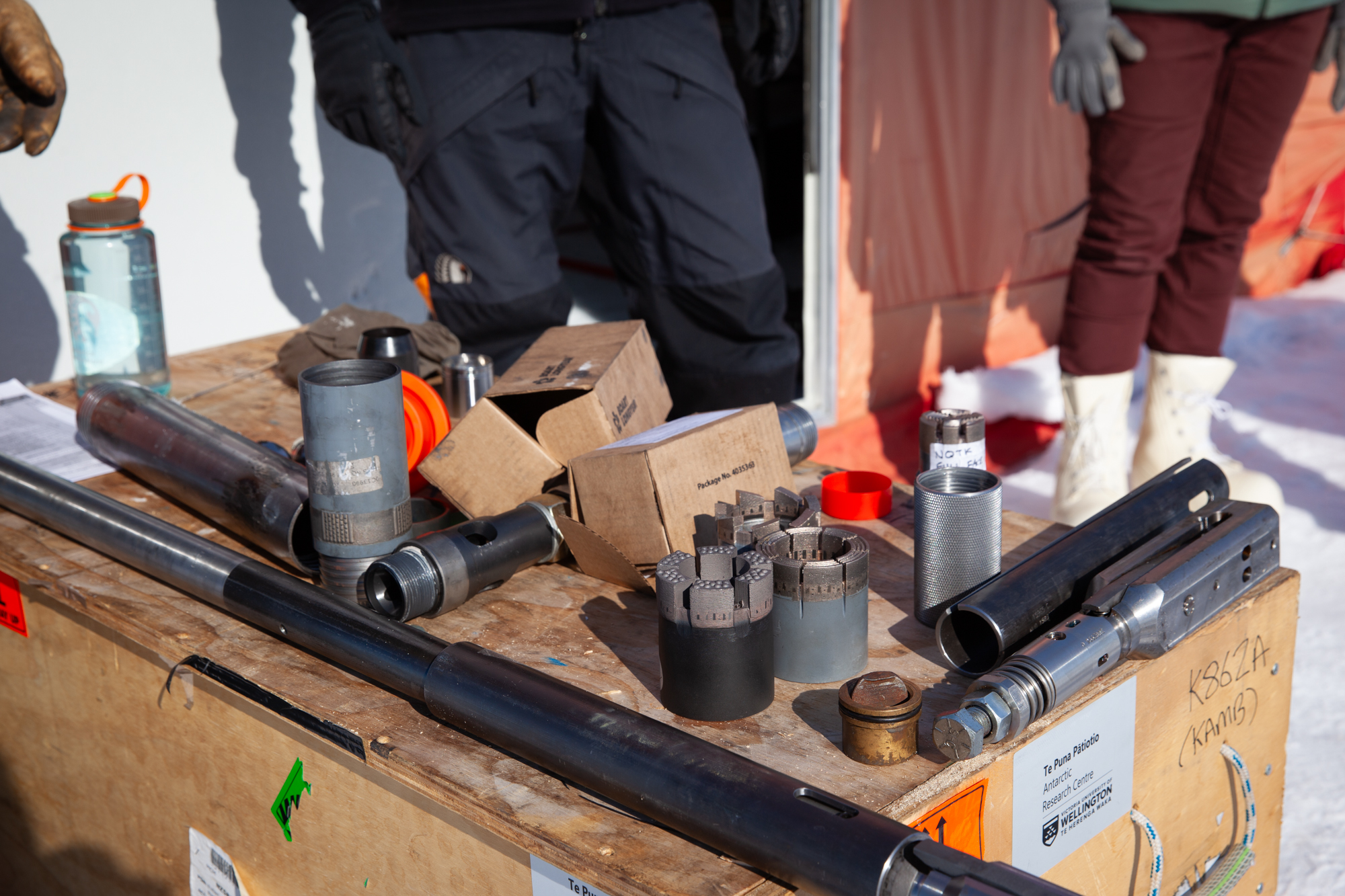AIDD driller Sean McKeown talked the team through the various drilling tools on site (hydraulic piston corer, push corer and rotary corer) with input from the other drillers. Together, drillers and scientists discussed potential drilling strategies, and how to ensure the best possible core recovery.