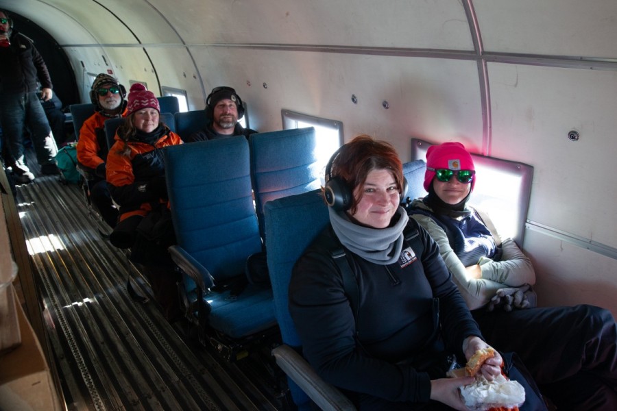 Five members of the science team, including the two Co-Chiefs Richard Levy and Tina van de Flierdt, flew to the drilling site at KIS3 on 4 December on a Basler BT-67. They were joined on the flight by an AIDD driller and the camp medic.