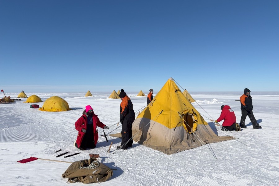 The 860km flight from Williams Field on Ross Island takes around 3.5 hours, heading southeast across the Ross Ice Shelf to KIS3 on the Siple Coast. The team were delighted to arrive at site, meet the rest of the drillers and camp staff, and get their homes away from home set up in “Tent City”.