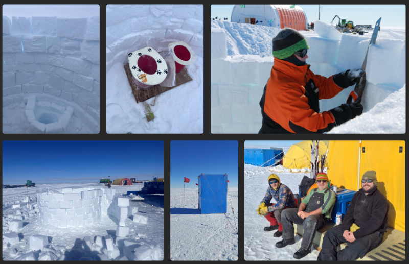 A popular question from friends and family about life in the deep field in Antarctica is where do you go when you need to GO? With a total of 27 members now at the SWAIS2C KIS3 drill site, we needed more than the “Turdis” (our blue “outhouse” toilet facility) to keep everyone comfortable. Fortunately, science team member Jason Coenen has excellent snow construction skills, today he completed construction of our second facility, called the “Nautilus” due to its spiral shape.