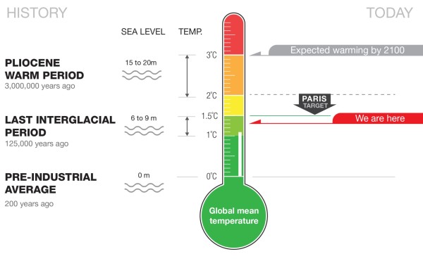The Paris Agreement presents an ambitious goal: to keep global warming less than 2°C (3.5°F) above pre-industrial levels. But these targets present a massive challenge, because global average temperature is already 1°C (1.8°F) above pre-industrial levels and rising.